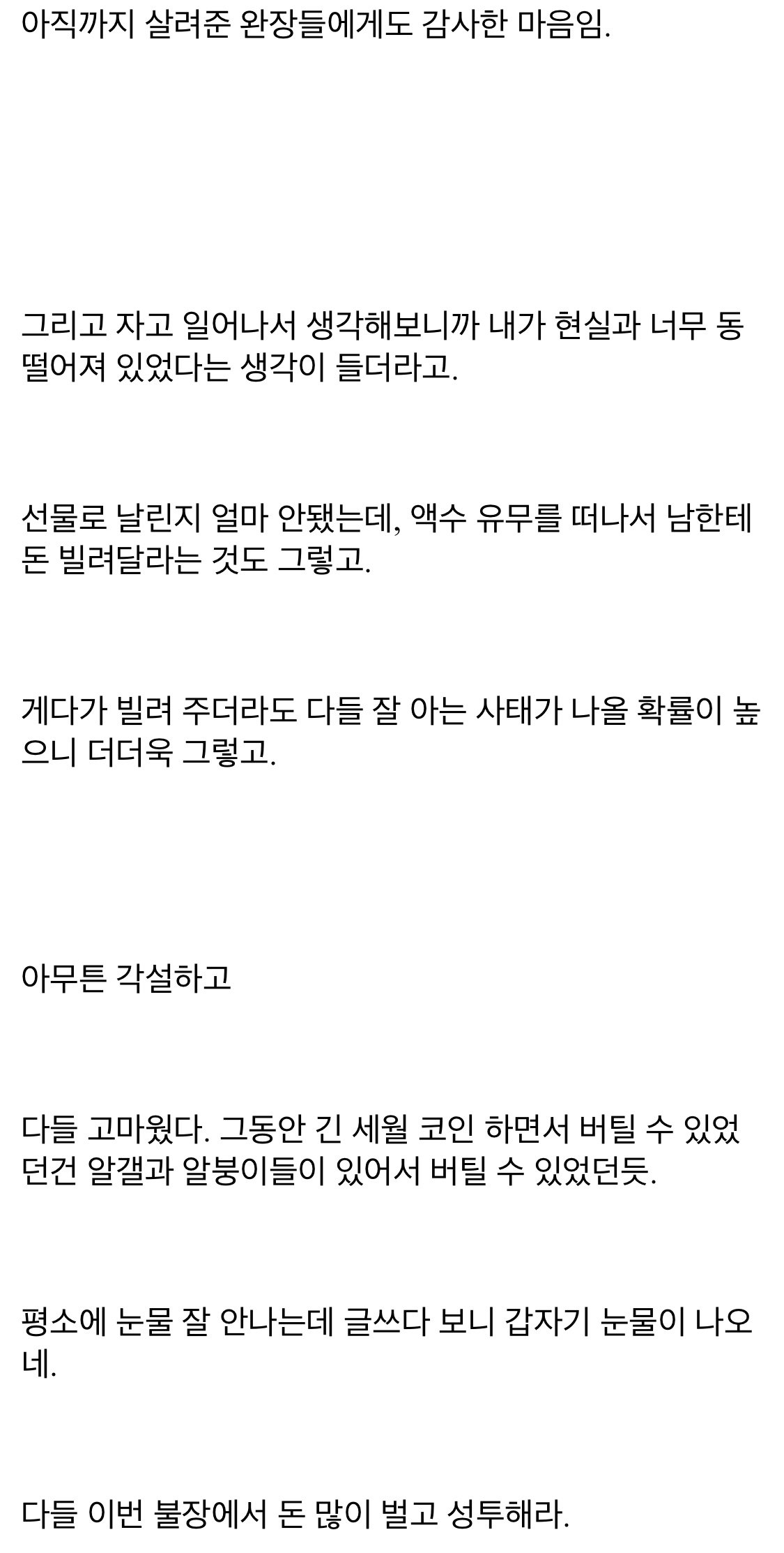 평소에 눈물 잘 안나는데 글쓰다 보니 갑자기 눈물이 나오