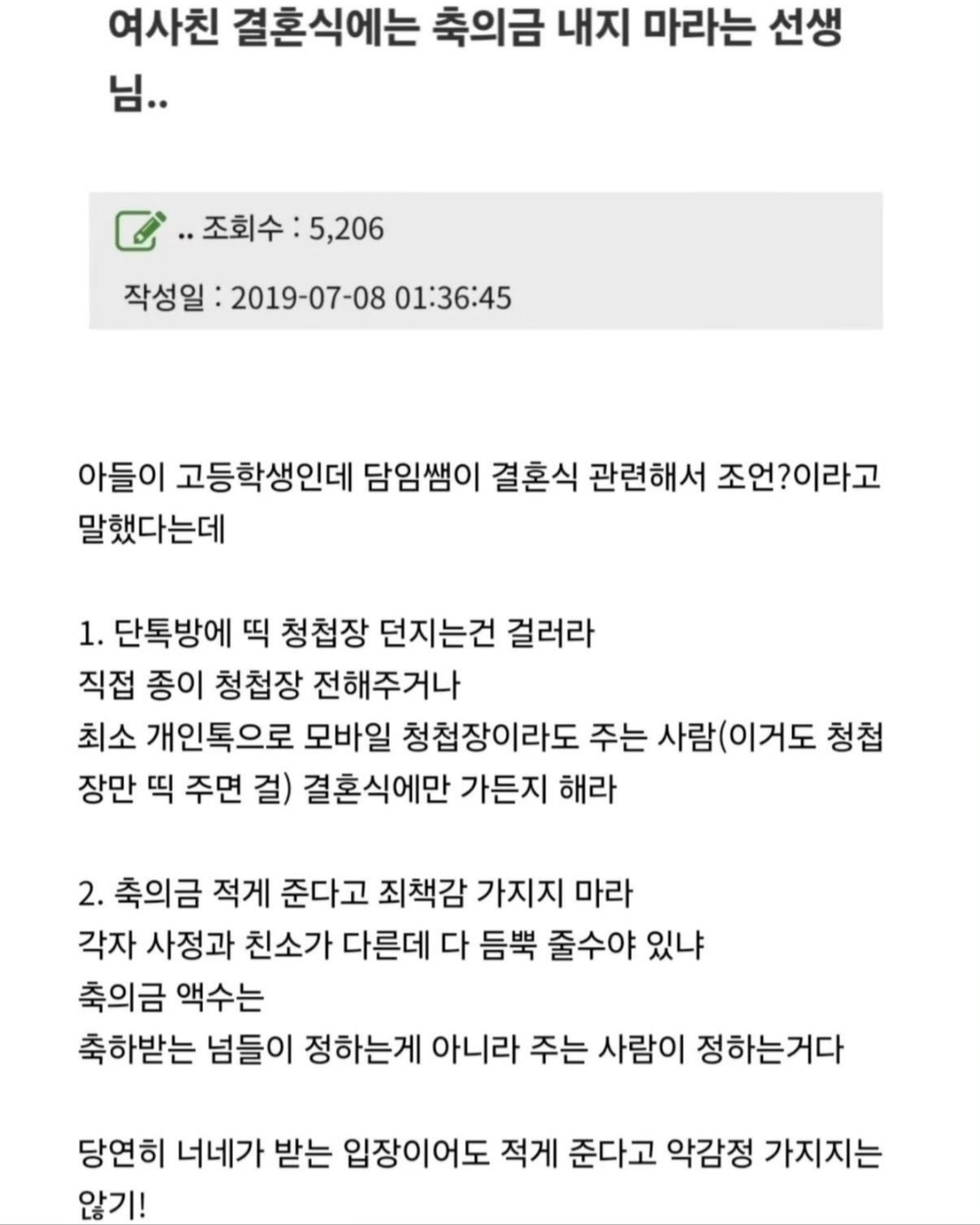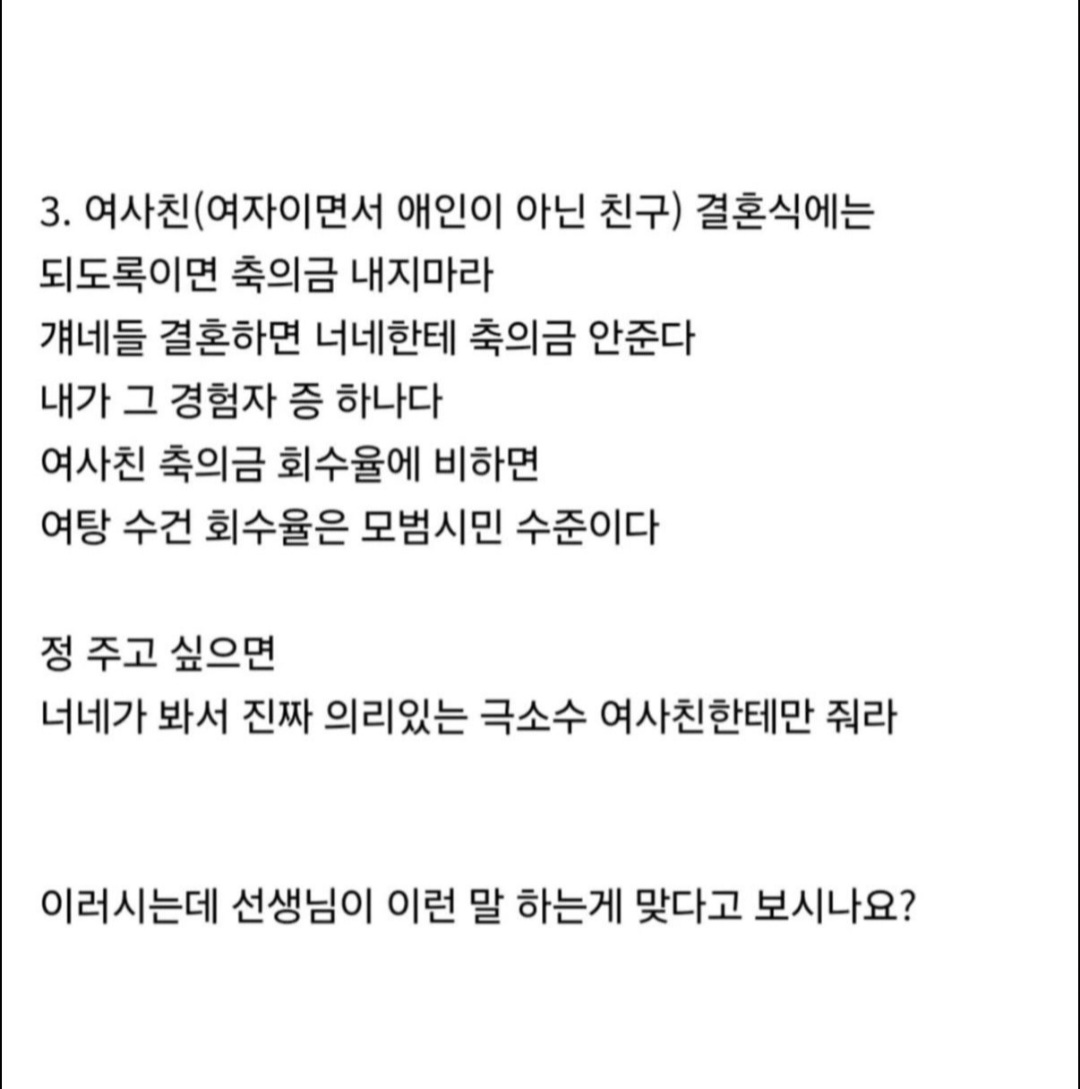 여사친 결혼식에는 축의금 내지 마라는 선생님..